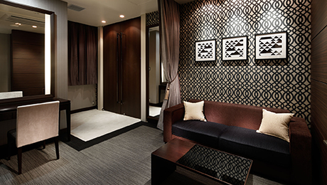 ブライズルームは、ウェディングパーティ当日のおふたり専用のお部屋。広々とした空間に、専用のパウダールームとゆったりとくつろげるソファ席をご用意しています。ご準備のひとときも、リラックスしてお過ごしいただけます。